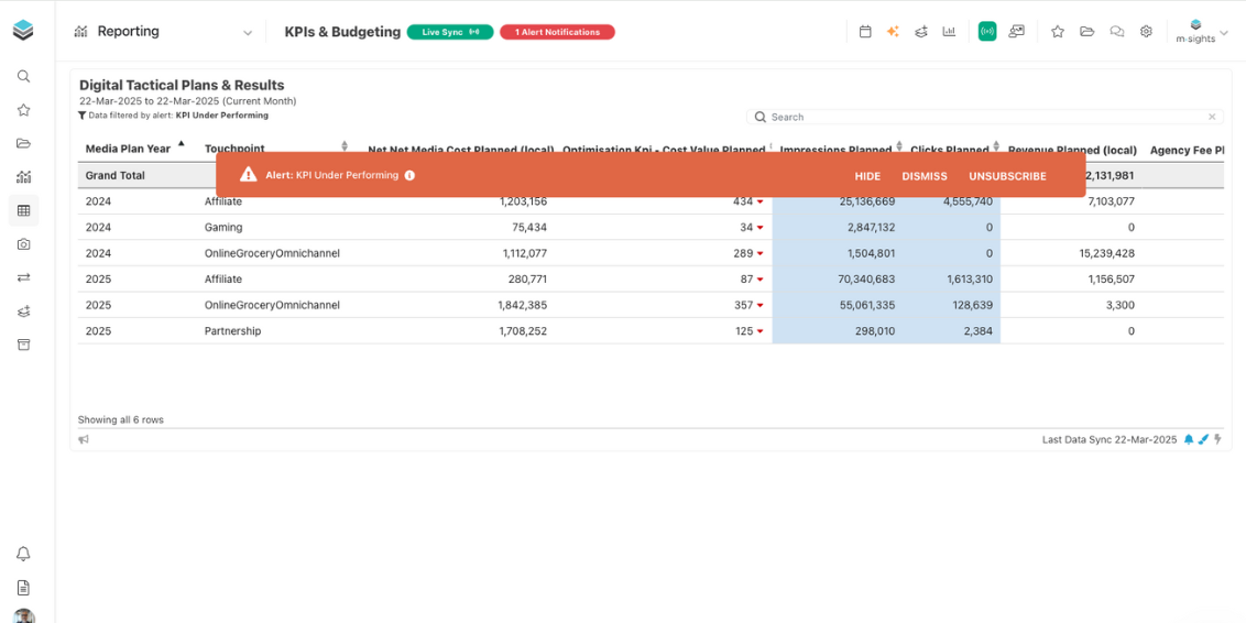 - Identify and adjust underperforming media instantly