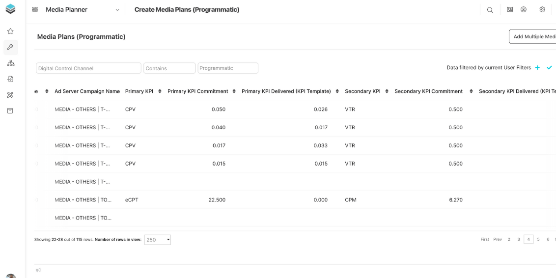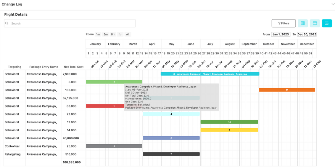 Manage flight-level media plan details with budgets, KPIs, pacing, and automated flowcharts for real-time visibility.