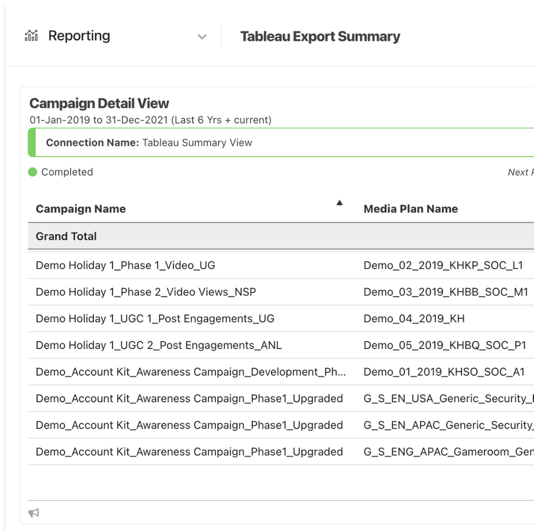 Create automated exports of cleansed, always-ready data to power client data lakes, BI tools, MMM/MTA models, and AI.